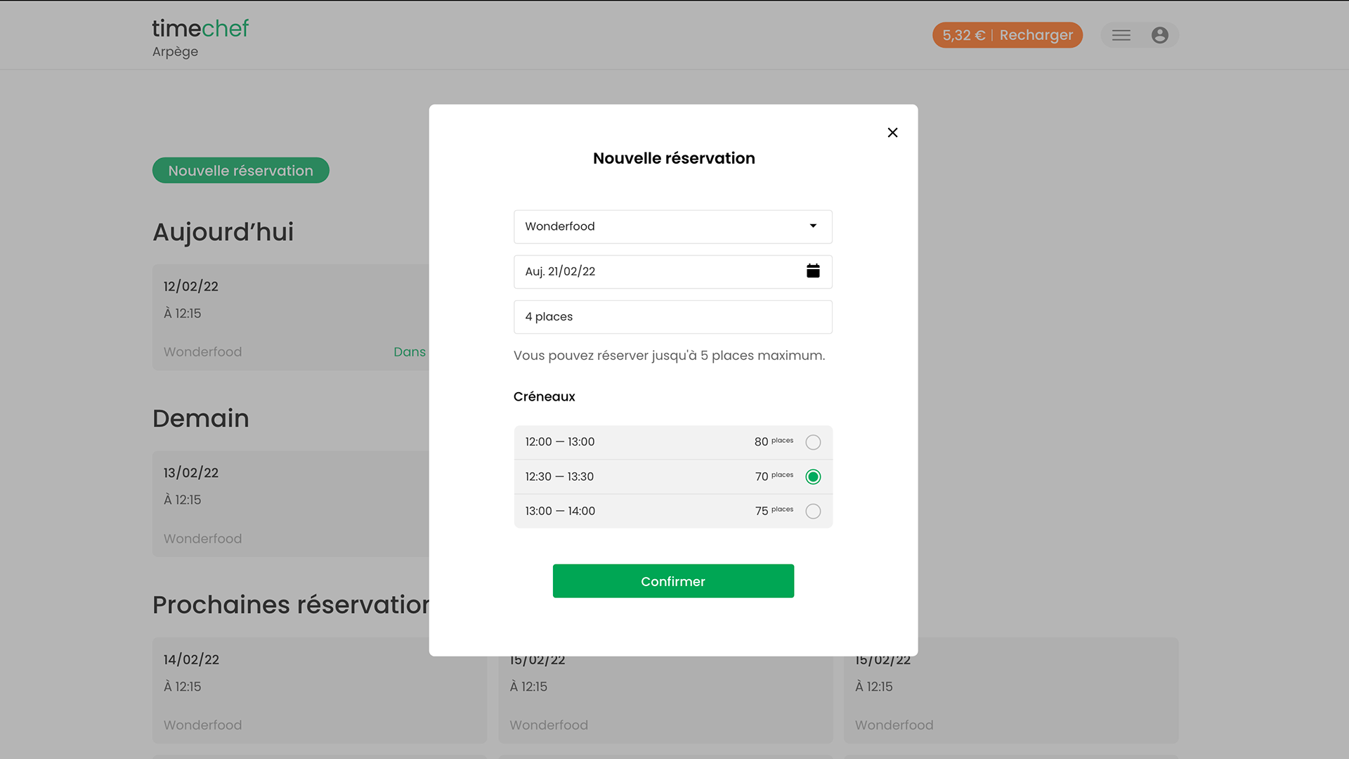 Design de maquettes interactives pour la 2e version de l’application Timechef pour format desktop, tablette et mobile. Refonte graphique d'écrans pour les interfaces d'application client / restaurateur.